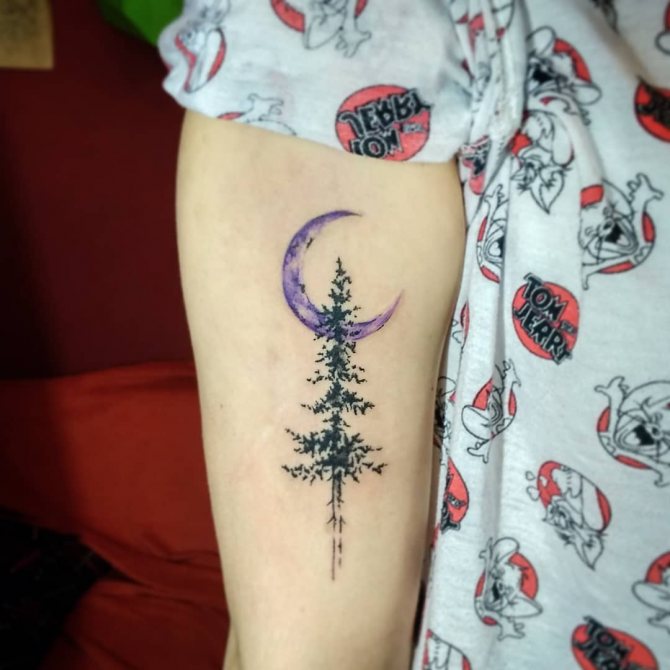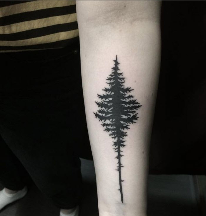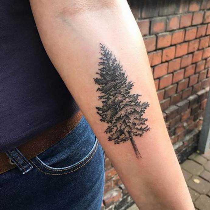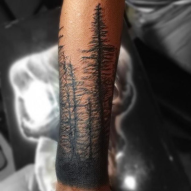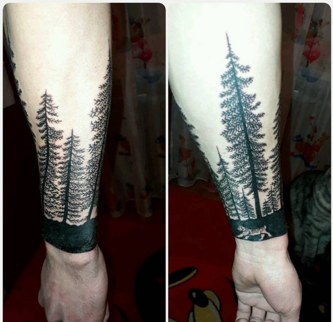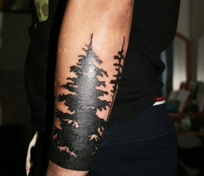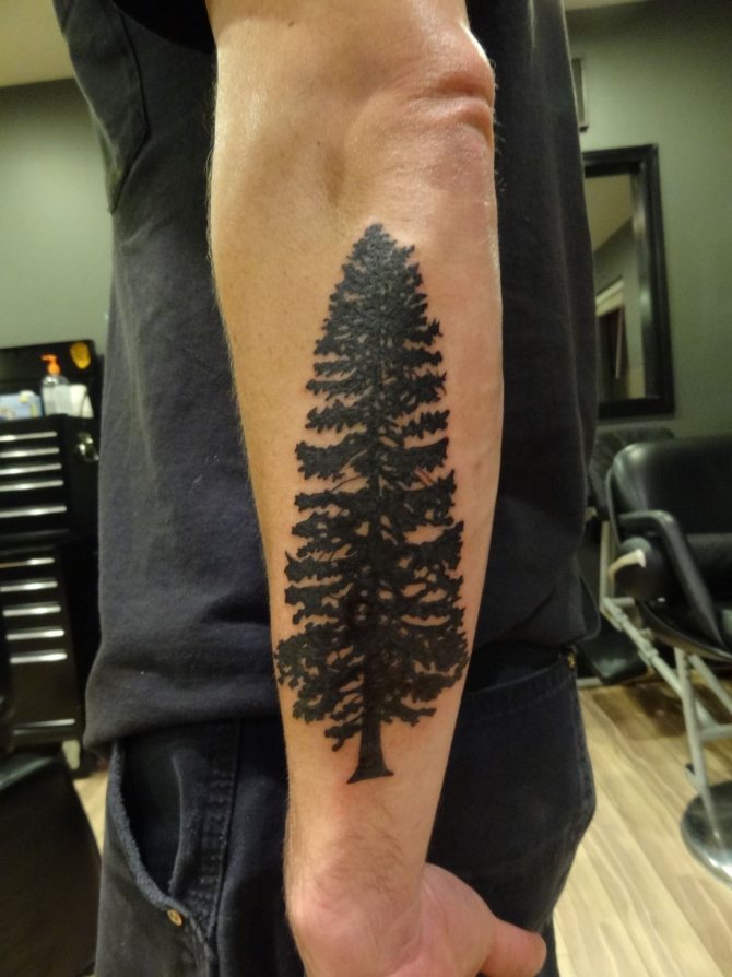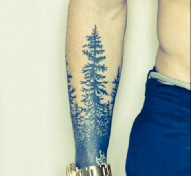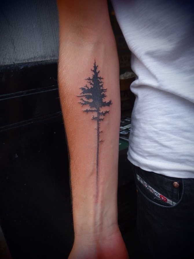 Le tatouage d'une épinette est idéal pour les filles comme pour les hommes, car cet arbre soulignera l'originalité de la pensée de son propriétaire. Un tatouage avec un arbre à feuilles persistantes a un aspect attrayant, et l'absence d'interprétation négative ouvre des possibilités illimitées pour une personne qui aime l'art corporel. En complétant l'image par des oiseaux, des montagnes, des animaux ou d'autres arbres, on peut créer une image capable de choquer (de manière agréable).