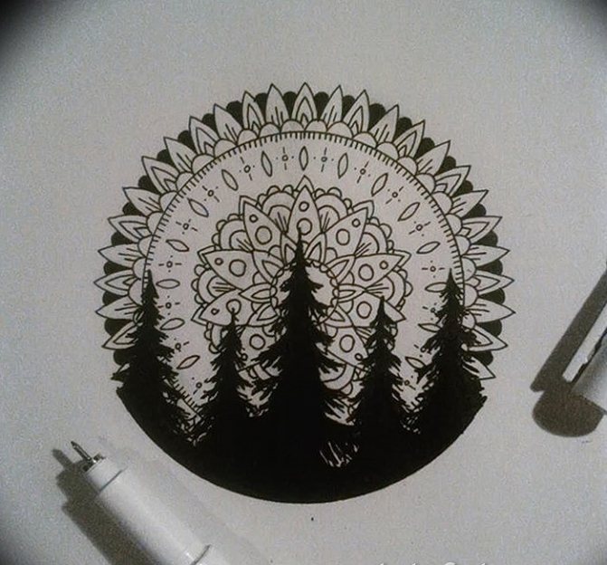 Si vous regardez attentivement la silhouette de l'arbre, vous pouvez voir une flamme, c'est pourquoi l'arbre est souvent associé au feu céleste. Beaucoup pensent qu'une telle image sur le corps est capable de protéger le porteur et d'éloigner les mauvais regards et les forces maléfiques. On croyait également auparavant qu'une telle peinture corporelle pouvait redonner la santé à une personne en la guérissant de tous ses maux. Dans l'ensemble, le tatouage d'épinette est un cas rare où le design n'a pas d'interprétations ou de significations négatives, il vaut donc la peine d'y prêter une attention particulière.