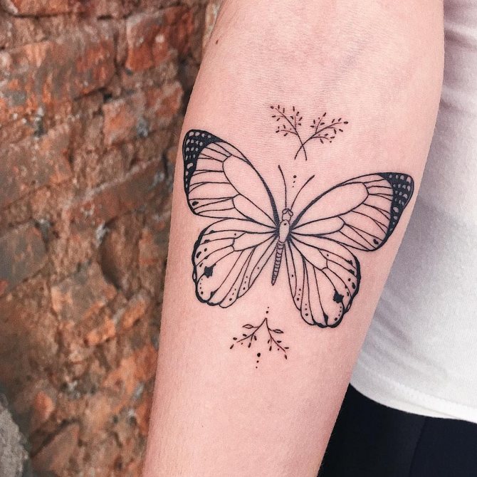 Ce n'est pas parce que le papillon est un personnage populaire que votre tatouage ne sera pas original et intéressant. Sur Internet, vous pouvez trouver des photos de milliers d'œuvres réalistes, allant de très petites à de grandes peintures sur tout le dos ou les manches avec l'image d'un papillon avec des fleurs sur un fond de ciel clair et d'herbe vert vif. Et chaque sketch a ses propres caractéristiques uniques, sa propre tournure.