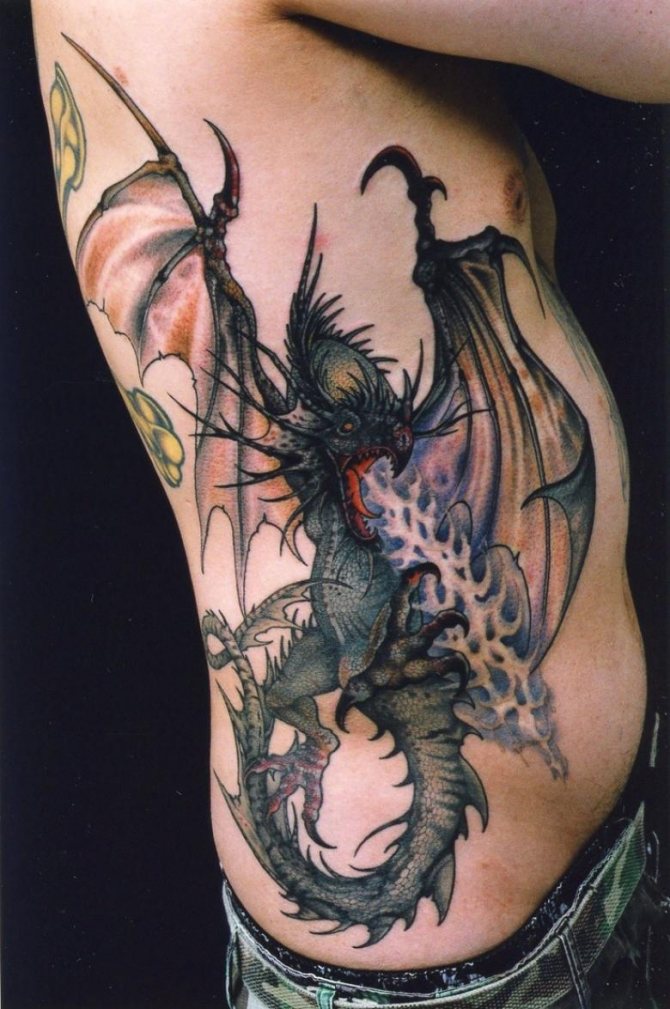 Un puissant lézard ailé a toujours été un motif de tatouage populaire. Souvent agressif et menaçant, le dragon sur le corps d'un guerrier était destiné à intimider ses adversaires. Dans le monde d'aujourd'hui, on se tatoue plus pour des raisons esthétiques que pour le besoin réel de transmettre un message hostile, mais les dragons sont toujours respectés.