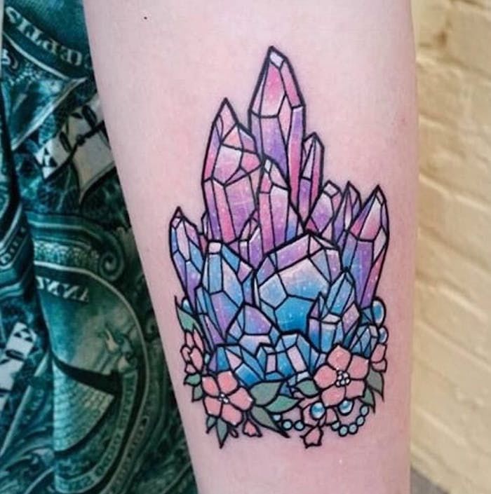 Sagesse, pureté, spiritualité et pouvoir magique. Parce qu'aucun cristal ne se ressemble, les tatouages en cristal sont aussi des symboles de