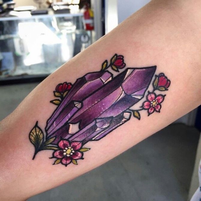 - La dureté de caractère.. Les cristaux sont extrêmement forts. Une personne qui choisit ce tatouage a des principes, une forte volonté et est équilibrée. L'autodiscipline est importante pour lui, ses principes sont inébranlables.
