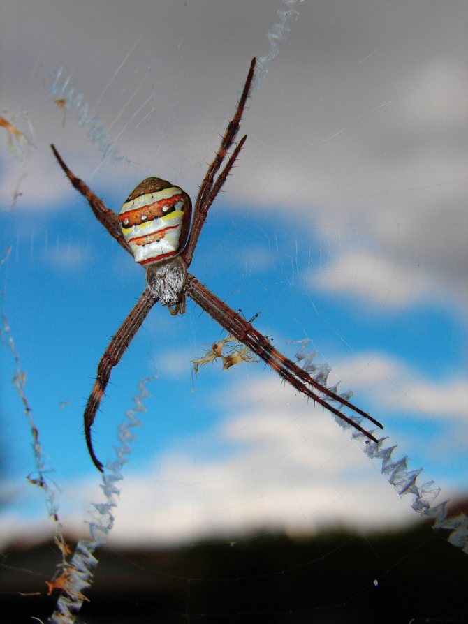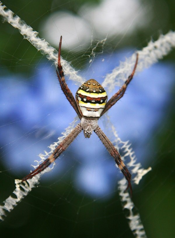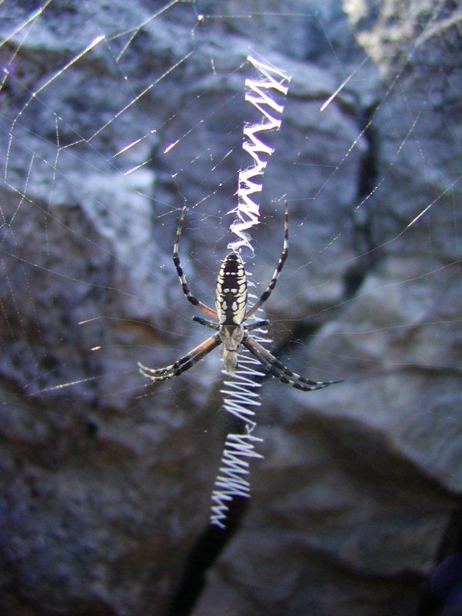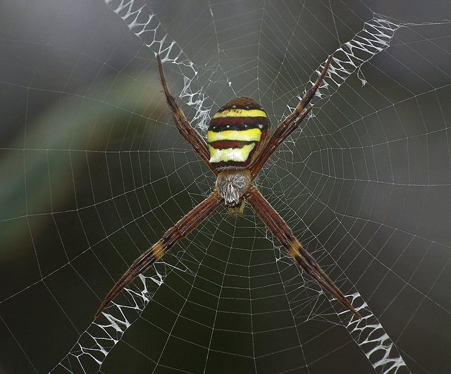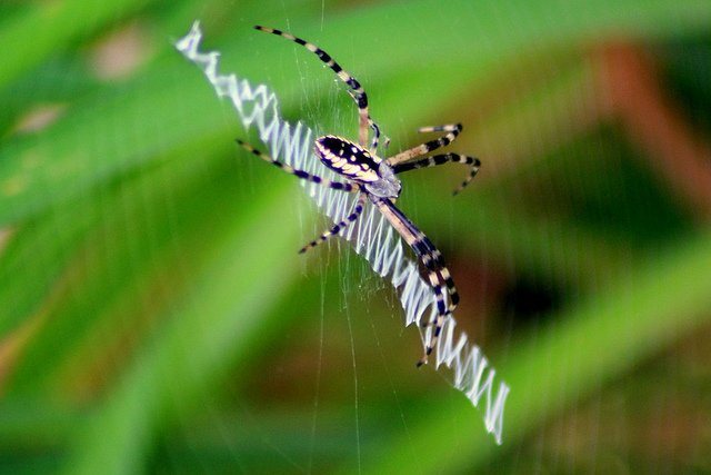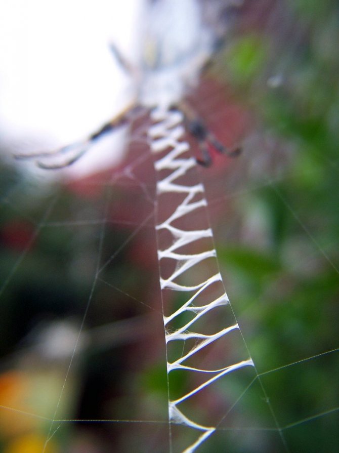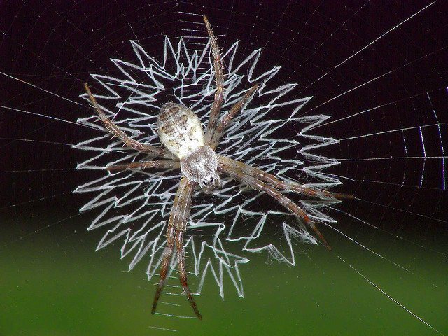 C'est une explication assez simple, mais si vous réunissez cinq arachnologues dans la même pièce et que vous leur demandez à quoi sert la décoration d'une toile, vous pourriez très bien obtenir cinq réponses différentes. Certains pensent que cela contribue à la capacité de l'araignée à se défendre. En plus de faire paraître l'araignée plus grande, elle se fond dans son environnement, comme dans un camouflage. L'inconvénient de l'utilisation du camouflage est que l'araignée, au contraire, deviendra plus visible que la toile elle-même. Beaucoup d'animaux, d'oiseaux, par exemple, voyant de telles décorations s'arrêteront et ne passeront pas par la toile, détruisant en partie ou même en totalité le travail minutieusement créé. Ainsi, il pourrait bien être une sorte de signe "STOP" pour les autres animaux.