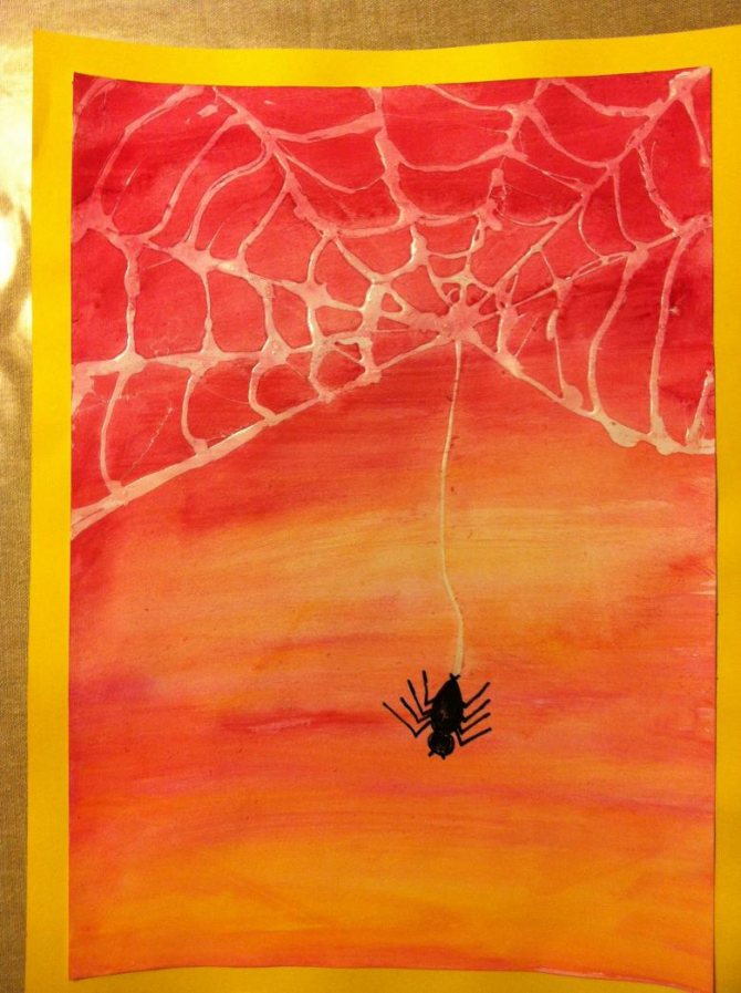 Si la base est faite de colle claire et épaisse et que les fils de la toile d'araignée sont dessinés à la peinture noire, cette décoration peut être réalisée sur du verre badigeonné de crème pour les mains. Une fois la colle sèche, la base restera transparente et se détachera facilement du socle en verre. Cette décoration peut être utilisée à plusieurs reprises pour décorer une pièce.