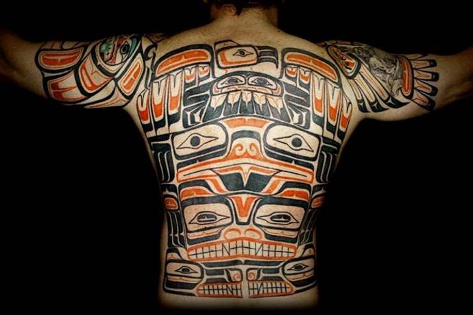 Ce style utilise principalement des thèmes liés aux animaux et à la nature. Les tribus avaient divers animaux représentés sur leurs maisons et leurs totems. C'est une sorte d'arbre généalogique, une histoire de clan. Au départ, certains étaient divisés en 2 clans de loups et de corbeaux, puis les familles étaient appelées grenouilles, ours, etc. comme noms de famille. Des événements tirés de contes de fées, de légendes et de guerres ont également été représentés. Ils pratiquaient le chamanisme, et le concept de "guides spirituels" était courant. Il s'agit d'une personne qui s'identifie à un animal ou qui considère un certain animal comme son protecteur. Ils avaient un culte de l'ours, les tatouages en forme d'ours étaient courants. Chacun peut y mettre sa propre signification, qu'il s'agisse d'une histoire ou d'un esprit protecteur - un talisman.