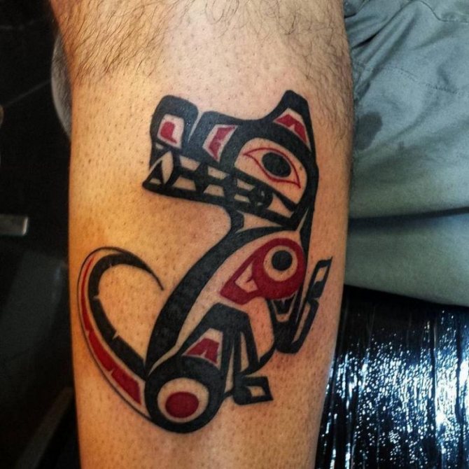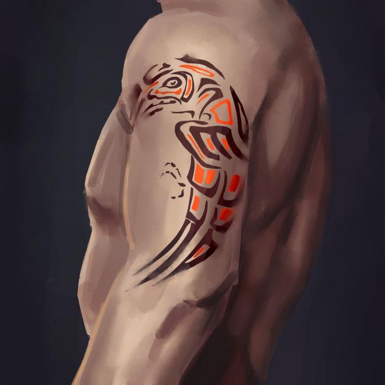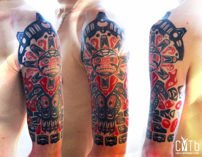 Il n'est pas très correct d'appeler ce style haïda. Ce sont des dizaines de tribus qui habitent encore aujourd'hui les îles et les côtes du Canada et de l'Alaska. Comme les Tlingits, les Tsimshians, les Kwakiutli, les Haïdas et bien d'autres. Dans les livres consacrés à leur art, ce style est appelé Formline. Je pense que c'est la définition la plus appropriée pour le style, afin de ne froisser personne. Les Indiens eux-mêmes sont très zélés à ce sujet. Ils sont maintenant Canadiens et Américains, et presque tout le monde a un iPhone. Je communique avec certains d'entre eux sur facebook et instagram. Parmi eux, il y a à la fois de fervents opposants à ce que nous faisons, nous les tatoueurs, et des amateurs. Certains pensent que nous volons leur culture, d'autres, au contraire, la soutiennent. Dans mes publications, j'appelle ce style Formline, et cela convient à tout le monde.