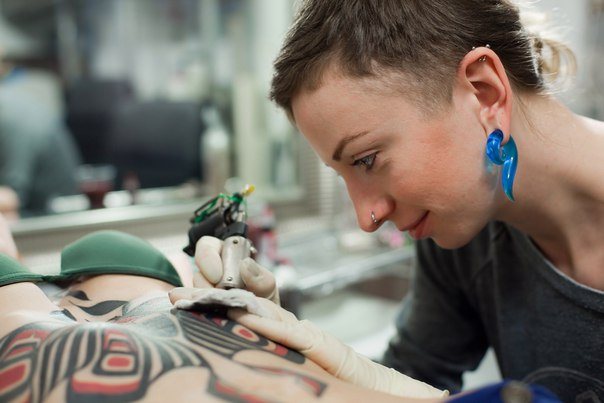 Aujourd'hui, nous allons nous familiariser avec un style inhabituel, rare et très intéressant de Haïda. Les tatouages de style haïda sont une sorte d'hommage à la "peinture tribale", car ce style est originaire des tribus indiennes. Quelle est sa particularité ? Pourquoi ce style n'est-il pas si populaire, malgré son originalité ? C'est de tout cela et de bien d'autres choses encore que nous allons parler aujourd'hui avec une merveilleuse artiste, Lena Lavrent'eva. Bonjour Lena, avant de nous plonger dans le monde de l'incroyable style Hyde, parlez-nous de vous. Tout d'abord, laissez-moi vous demander, pourquoi vous êtes devenue une Abeille ?