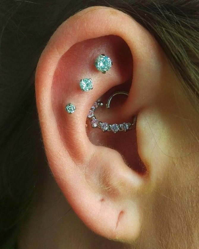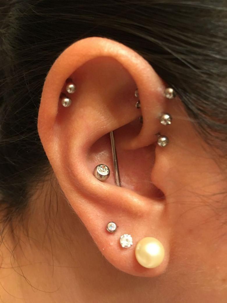 L'hélice (le piercing de l'oreille peut être double ou triple), en raison de son emplacement, implique le port de plusieurs types de produits. C'est l'endroit du piercing du cartilage le plus pratique pour porter des bijoux droits ou des bagues.