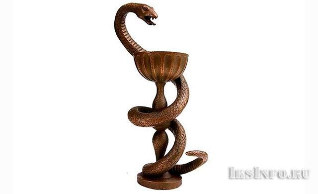 Les ailes du caducée symbolisaient la capacité à franchir toutes les frontières, le serpent symbolisait l'unité des contraires : la maladie et la guérison, et le bâton l'axe du monde. Les alchimistes ont essayé de trouver le remède parfait et le choix de cet emblème n'est pas accidentel. Car, selon les sciences occultes, c'est le caducée qui pouvait ouvrir le mystère de la vie et de la mort. Le médicament, cependant, devait bientôt avoir un symbole différent : un bol avec un serpent.