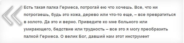 La partie centrale est généralement identifiée à l'axe du monde, le long duquel les dieux intermédiaires se déplacent entre le ciel et la terre. Du point de vue de certains chercheurs, Hermès était tel, c'est pourquoi il a obtenu le caducée. Qu'est-ce que c'est, nous l'avons démonté, mais comment est-il utilisé maintenant ?