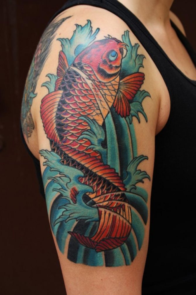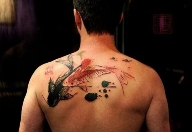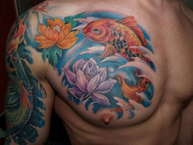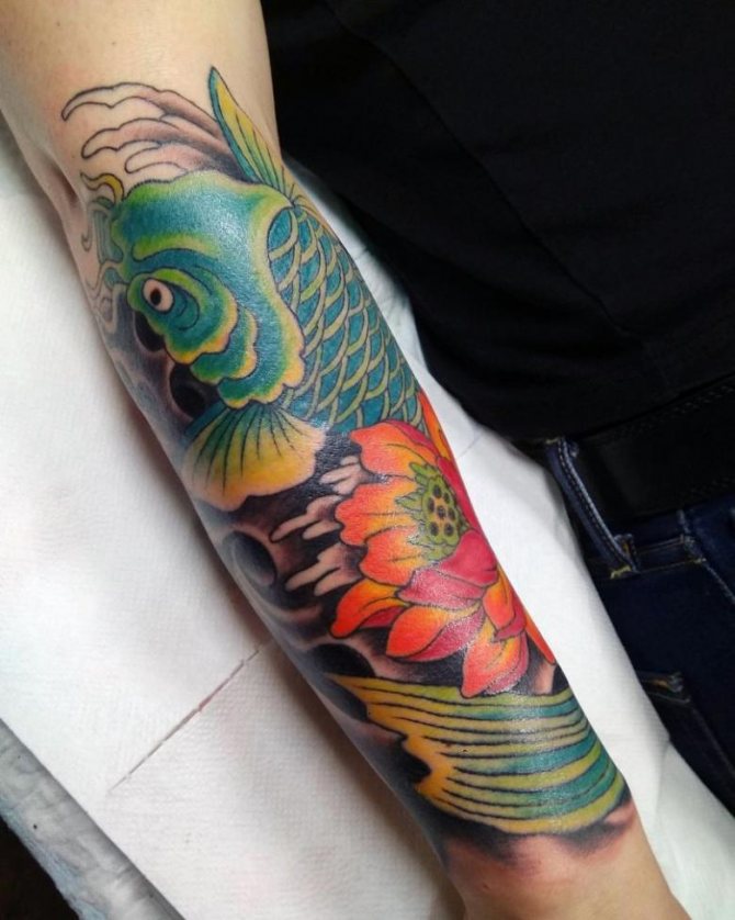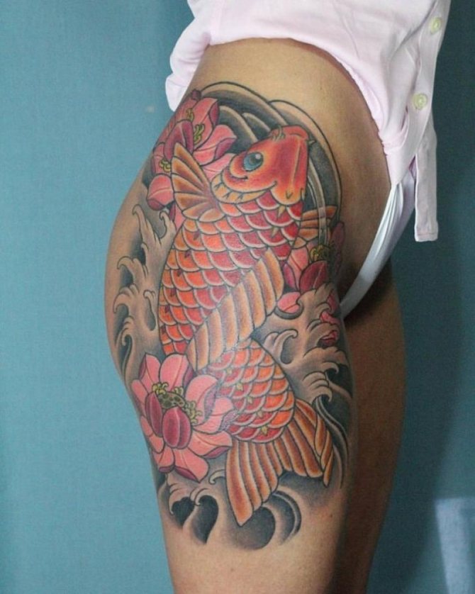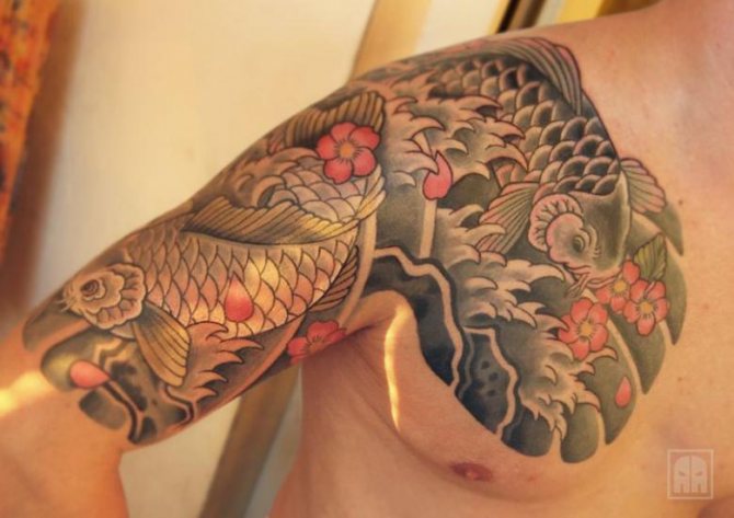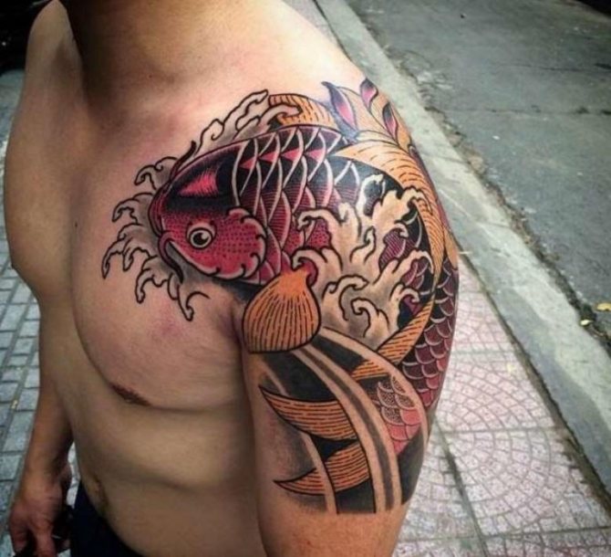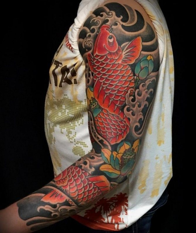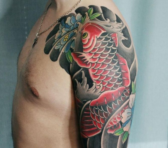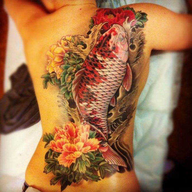 La carpe koï est entrée dans la culture du tatouage comme l'un des symboles de l'irezumi, le tatouage yakuza. Dans le langage des signes, un poisson aux écailles dorées signifie la majesté, le pouvoir impérial et la force masculine. Le nombre de significations a augmenté après l'intégration de l'esquisse dans la tradition européenne et américaine. Avec l'apparition de la carpe au panthéon des images de deux continents, ce ne sont pas seulement les hommes qui se parent de la peau, mais aussi les femmes.