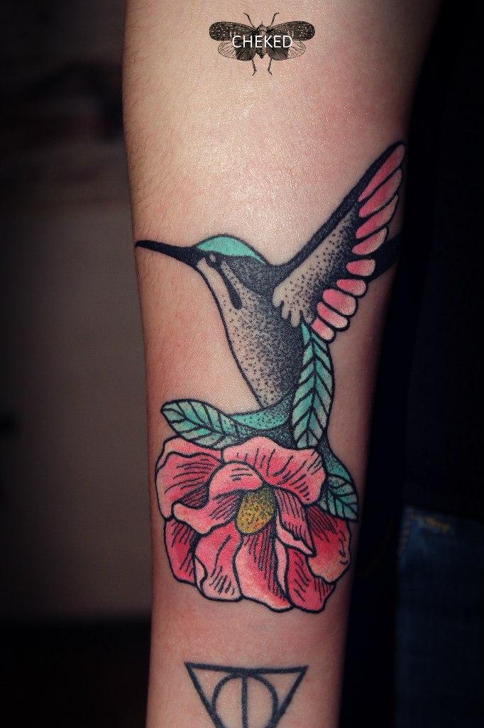 Le colibri est le plus petit oiseau, et l'une des plus belles créatures de notre planète. Sa taille est légèrement supérieure à celle d'un bourdon. Cet oiseau brillant ne vit que sur le continent américain, préférant les forêts humides et les prairies de montagne. Étant donné qu'il n'habite qu'une certaine partie du globe, le tatouage du colibri n'a pas beaucoup de significations. Les colibris, comme les insectes, se nourrissent de nectar, d'où leur surnom amusant d'"abeille à plumes".