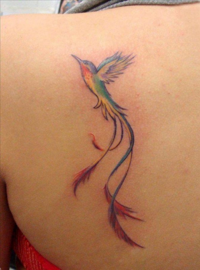 Il est donc conseillé à tous les amateurs de tatouages qui ont une nature légère, positive et qui aiment la vie, d'apposer sur leur corps l'image lumineuse d'un petit oiseau exotique.. Vous accentuerez votre personnalité et ajouterez du feu et de la passion à votre vie. C'est la signification de ce tatouage.