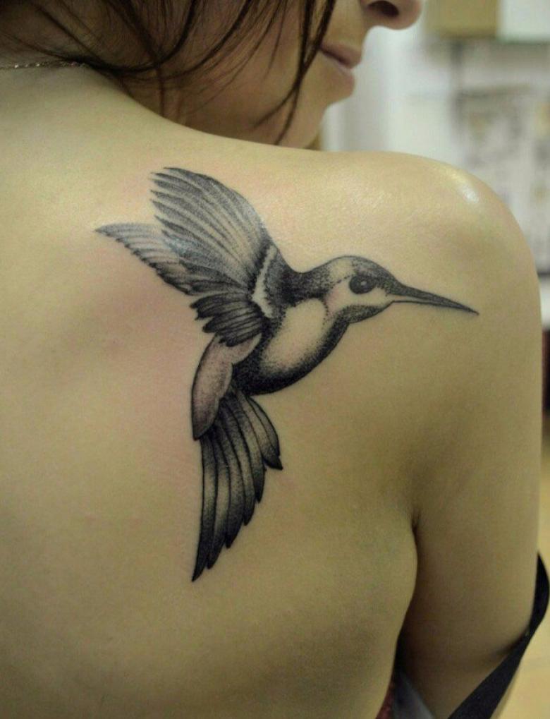 Tatouage d'un colibri sur l'épaule d'une fille - photo