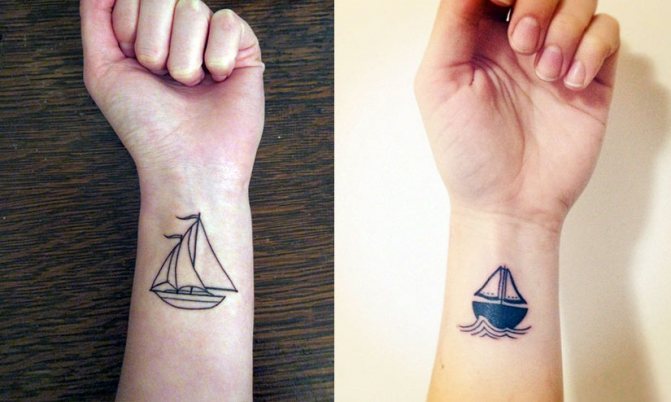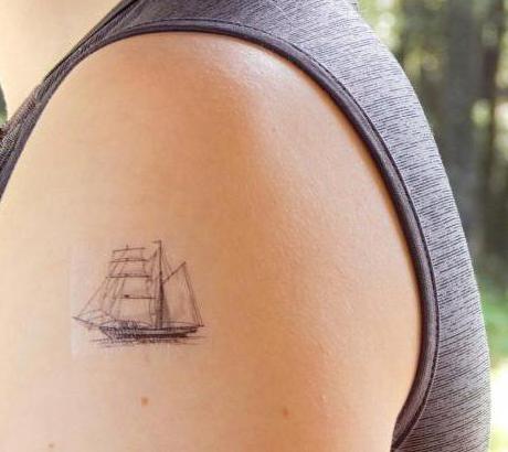 Un tatouage sur la tête est un désir de reconnaissance dans la société. Mais le tatouage "bateau" sur la main - un message direct aux gens autour. Si le motif se trouve sur le bras gauche, la personne cherchera à obtenir le résultat souhaité par des moyens indirects. Le symbole de la main droite indique une franchise malheureuse. Le porteur forcera son chemin sans se soucier de l'opinion des autres.