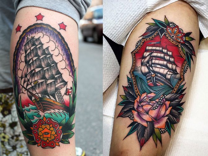 Des tatouages de bateaux modernes et vintage ont été créés dans une variété de styles. L'une des plus populaires est Old School. Aujourd'hui, vous pouvez commander un tatouage de bateau old school dans presque tous les salons de tatouage. Cette tendance, qui s'est développée en Europe et a ensuite migré vers le Nouveau Monde, est désormais répandue en Russie également. De nombreux maîtres créent des œuvres magnifiques, dont le style et la qualité ne sont pas inférieurs aux meilleurs exemples du passé. Il est difficile de trouver un style plus marin, car on pense que ce sont eux qui l'ont introduit en Occident.