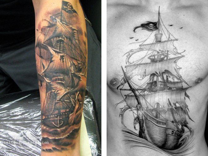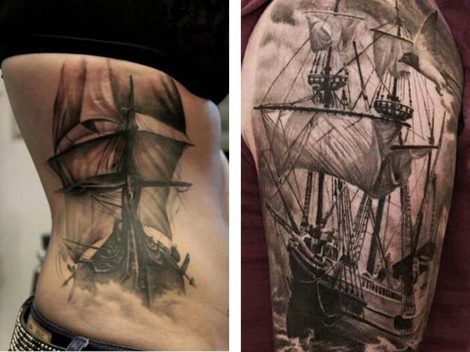 L'image d'un navire sur votre poitrine symbolise l'originalité de la pensée. Elle va souvent à l'encontre des normes conventionnelles. Un voilier dans le dos indique un énorme potentiel intérieur. Un "tatouage" dans le bas du dos est parfois le signe d'une relation sexuelle insatisfaisante. Le porteur rêve de nouvelles émotions et expériences passionnantes.