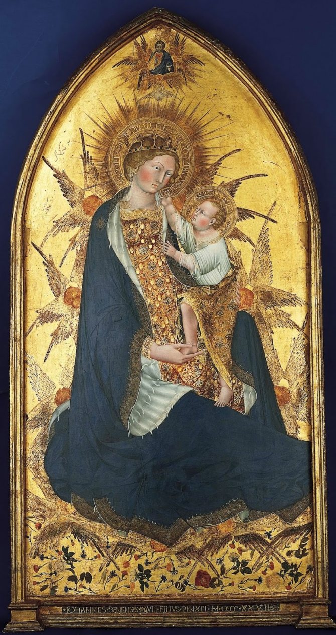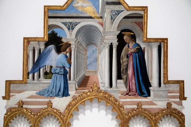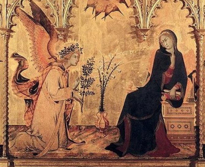 Une autre version de l'Annonciation par le même artiste. Ici aussi, la couleur des ailes est bleue.