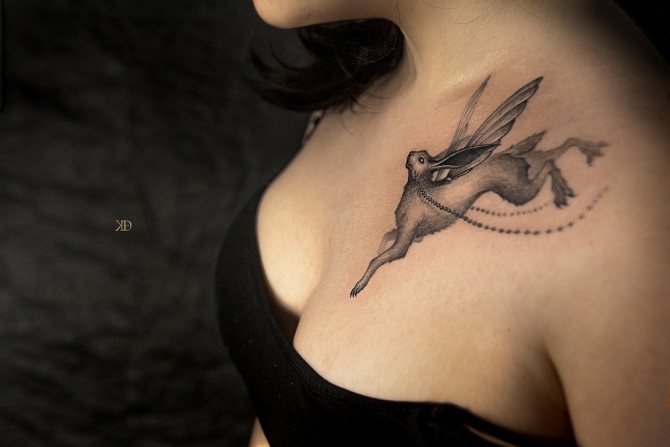 La version avec des ailes duveteuses de petite taille est un indicateur d'honnêteté et, dans une certaine mesure, de naïveté. Le tatouage minimaliste est destiné à ceux qui ont une intelligence vive et une haute estime d'eux-mêmes. Ces personnes n'ont pas besoin de démontrer leurs talents à l'aide d'un tatouage accrocheur et volumineux. Le tatouage miniature ne peut qu'accentuer la personnalité à multiples facettes d'une personne. Les endroits les plus populaires pour appliquer le tatouage d'ailes chez les jeunes femmes sont les scapulae, le cou, les chevilles et les poignets.