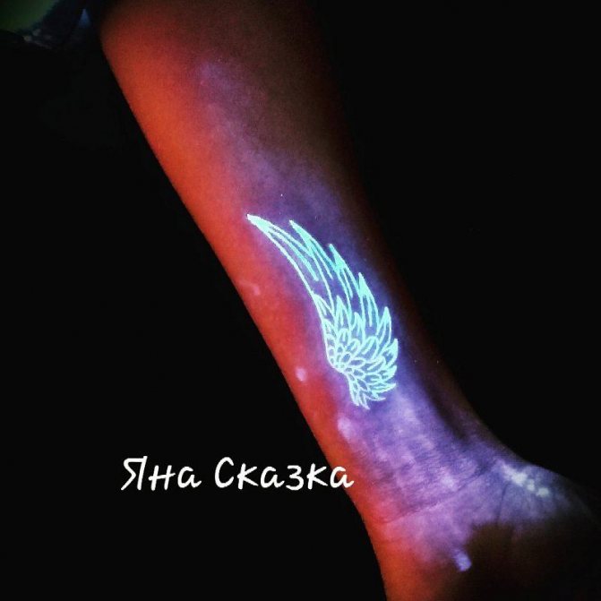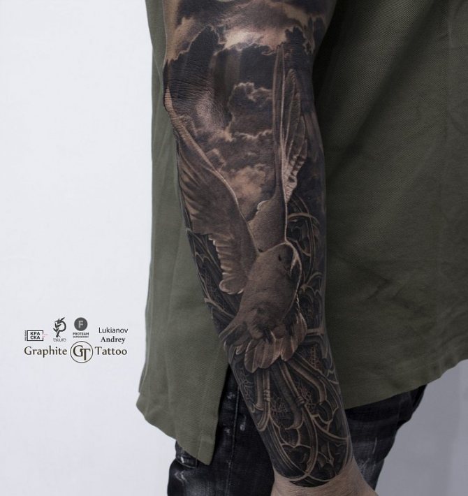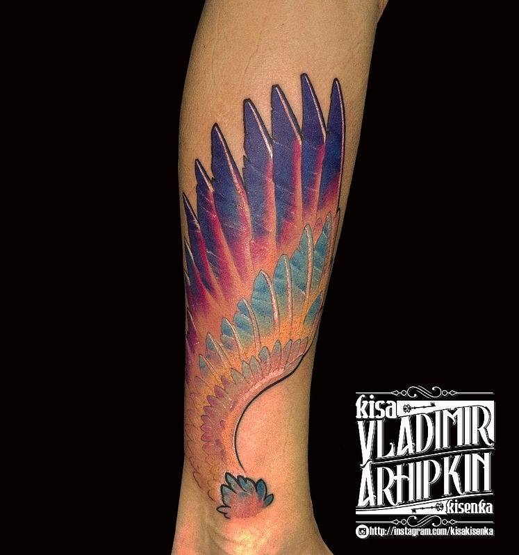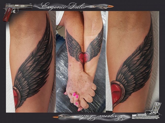 De plus, très souvent, le dessin d'ailes caractérise son propriétaire comme une personne qui a parcouru un long et difficile chemin vers la découverte de soi et le dépassement de ses faiblesses. L'artiste reconnaît consciemment les ailes comme un attribut de l'apesanteur, une sorte de signe magique qui permet de s'élever au-dessus de la nature périssable et de la vanité du monde.