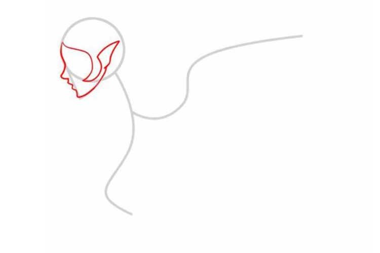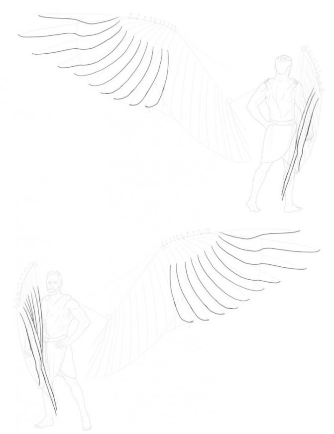 - Les limites du dessin, ses détails - tête, torse, épaules, bras et jambes, ailes - sont soulignés. Toutes les proportions doivent être vérifiées ;
