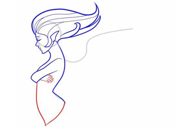 - L'étape suivante consiste à dessiner une jupe (jambes), la fille doit avoir une taille fine et élégante ;
