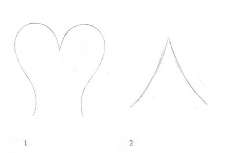 Une ligne courbe est tracée juste au-dessus des franges, menant légèrement vers la droite et descendant vers la tête. Les actions sont répétées de l'autre côté. C'est la coiffure.