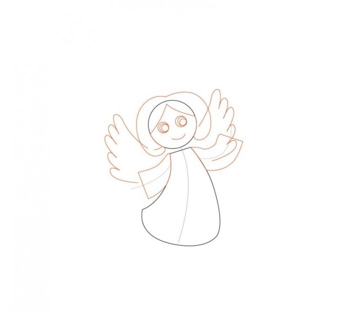 - Il est maintenant temps de peindre les manches comme des triangles arqués, avec l'un des bras de l'ange pointant vers le haut ;