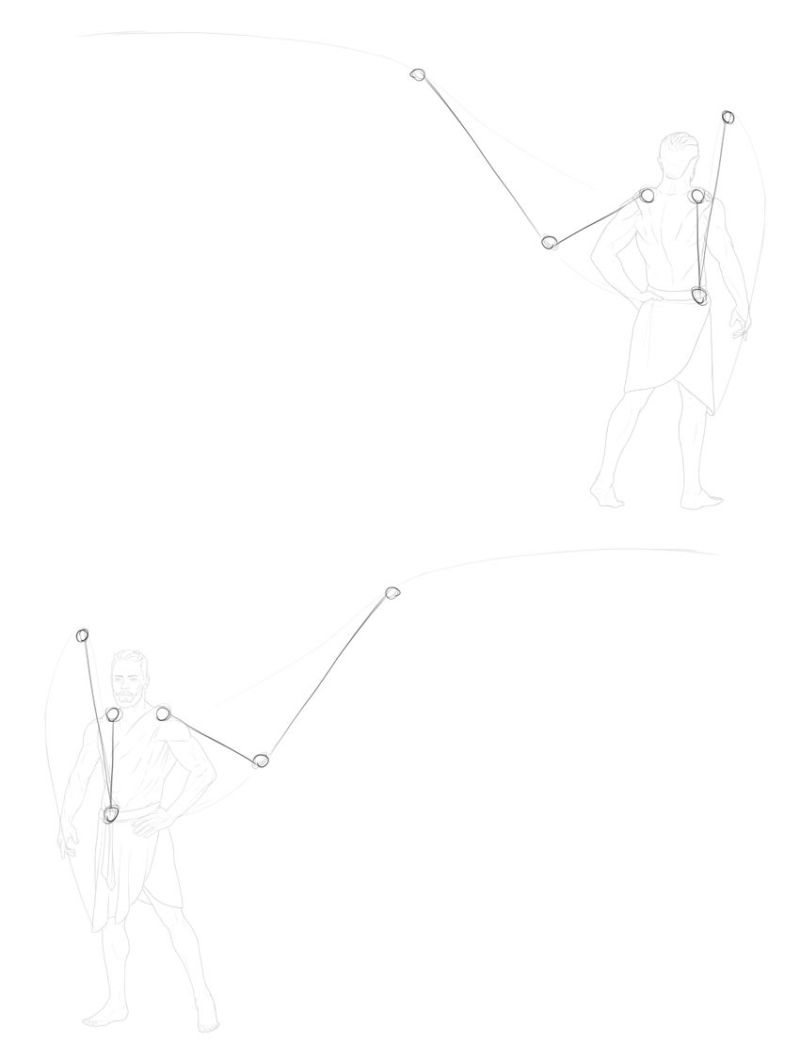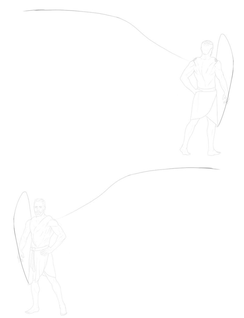 - Le contour du corps et ses détails - muscles, cage thoracique, clavicules, mains, épée, etc. sont détaillés ;