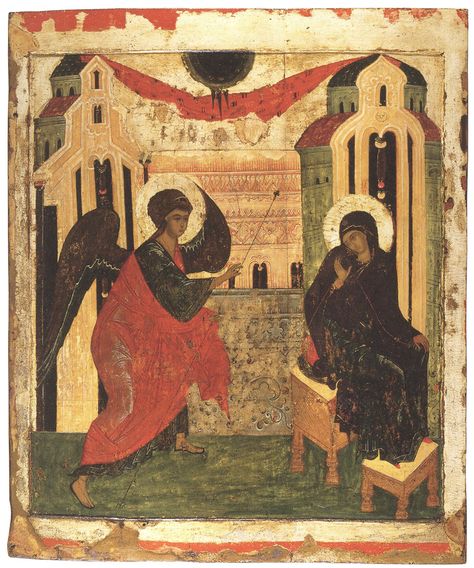 Et je terminerai par une peinture d'Alexandre Yakovlevich Golovin, L'ange de l'Annonciation. Et nous revenons à la couleur bleue.