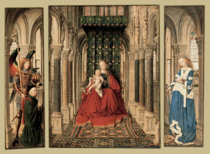 Je vous ai déjà montré les ailes arc-en-ciel, mais laissez-moi vous donner un autre exemple. Toute beauté n'est pas Gabriel. Ici aussi, l'archange Michel a de magnifiques ailes aux couleurs de l'arc-en-ciel. C'est encore Van Eyck.