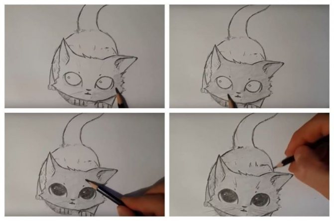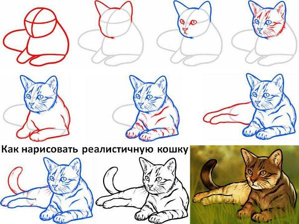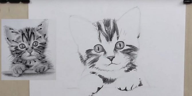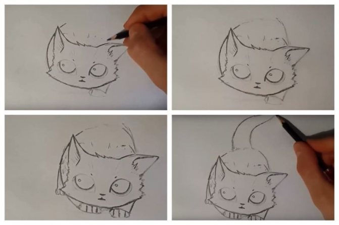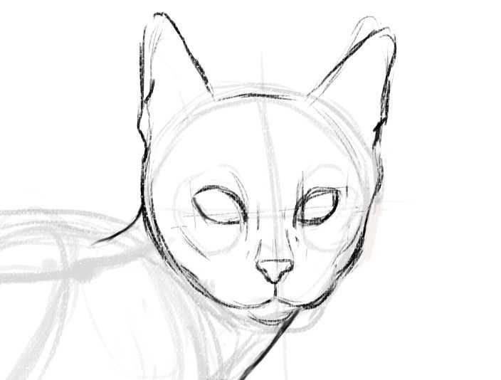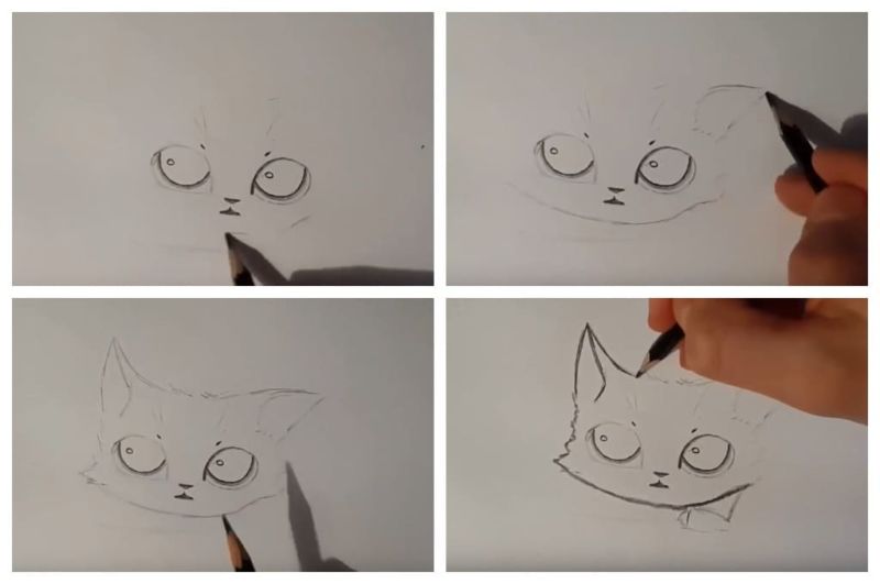 Lorsqu'ils maîtrisent le modèle de la tête, ils s'exercent en dessinant d'après la nature ou d'après des photos de différents représentants de la famille des chats. Dans le processus de travail, ils regardent constamment l'image, la comparant avec ce qu'ils obtiennent. Ils calculent soigneusement les proportions et observent la symétrie.