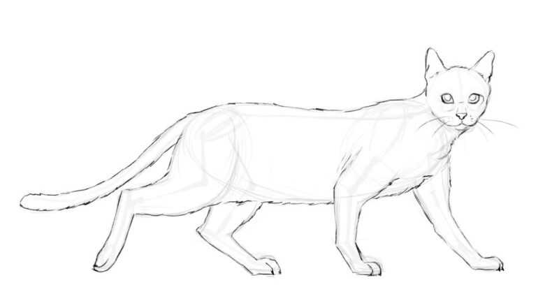 Lors du dessin, une attention particulière doit être accordée à la colonne vertébrale. Chez le chat, elle est très souple et limitée au thorax et aux hanches.