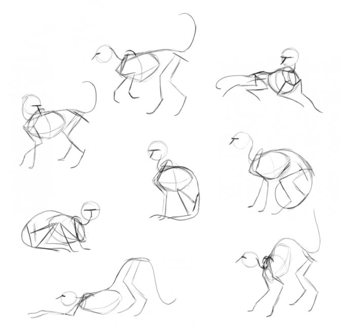 - Sur les pattes sont représentées des griffes (tirets). Et, bien sûr, n'oubliez pas la queue.