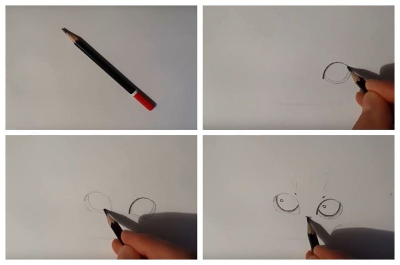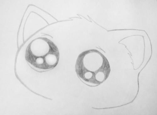 - Dessinez de petites pattes avant "iksikom", des yeux ronds de dessin animé, une moustache.