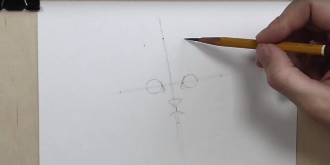 Pour effectuer cette tâche, dessinez également un cercle avec un trapèze (museau) sur le côté droit. Le cercle est divisé en quarts par une croix. L'axe de l'horizon pointera du côté où le regard du chat se posera.