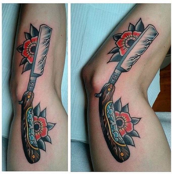 Voir un tatouage de lame de rasoir sur le corps d'une fille est rare. L'image est principalement privilégiée par les femmes occidentales dans la culture du tatouage. Dans la CEI, le symbole est souvent comparé aux tatouages de bagnards. C'est pourquoi les filles ne se farcissent l'image que pour une raison consciente.