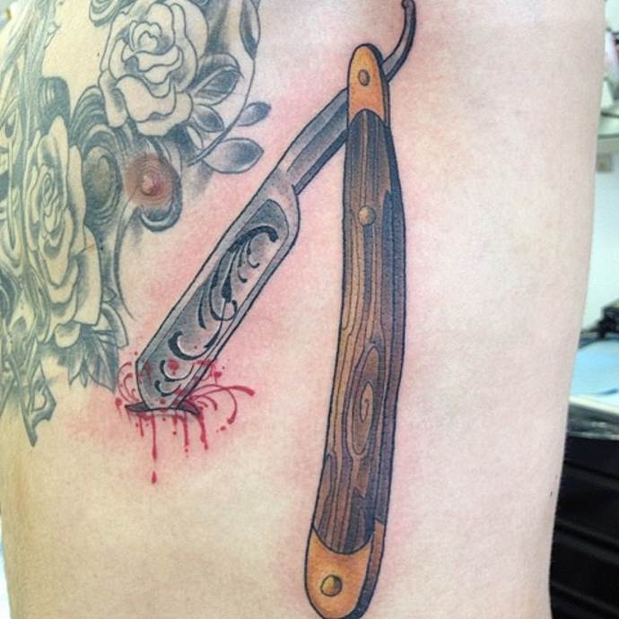 Le tatouage de la lame de rasoir a une signification émotionnelle profonde. Elle est interprétée comme "la première coupe est la plus profonde". Le message peut être décrypté car les premières blessures psychiques infligées sont les plus douloureuses. Le tatouage peut être appliqué en souvenir du premier amour, de la perte d'une amitié ou d'une trahison.