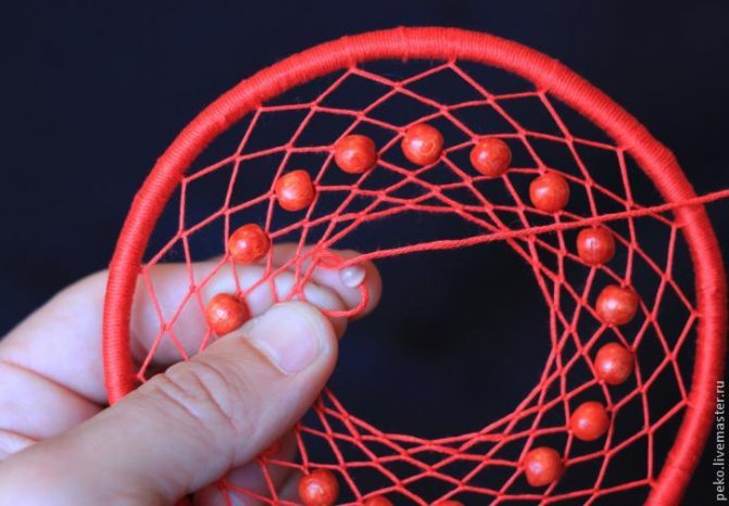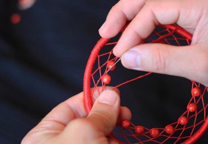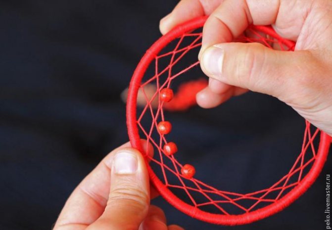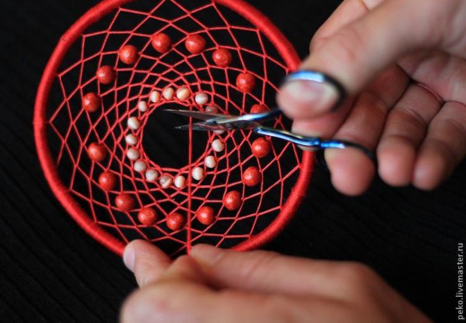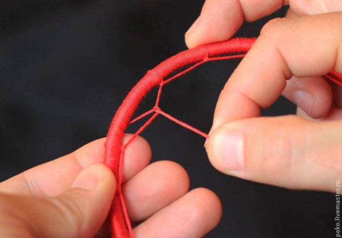 Une brindille de saule doit être entourée d'un fil, d'une tresse, mais de façon à ce qu'il y ait une pointe de pas moins de 15 centimètres. L'autre extrémité du fil est attachée à la tige de saule, formant ainsi un cercle. A partir de là, le tissage de la toile commence. Pour faciliter cette opération, il convient de diviser le cercle, au sens figuré, en plusieurs parties séparées par une distance de 4 cm.
