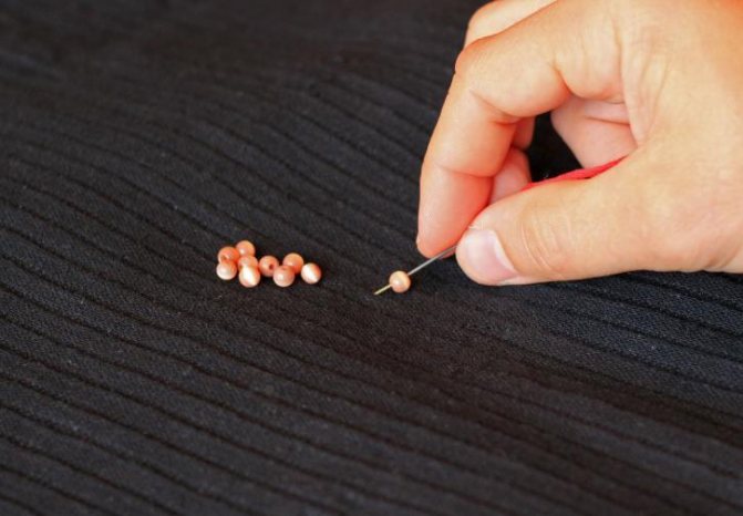 Étape 10. Quand les deux rangs sont faits, passons à la leçon de décoration. Préparons des perles ou des perles de verre, qui serviront de décorations.