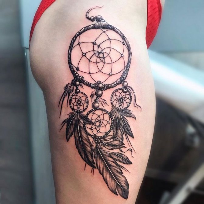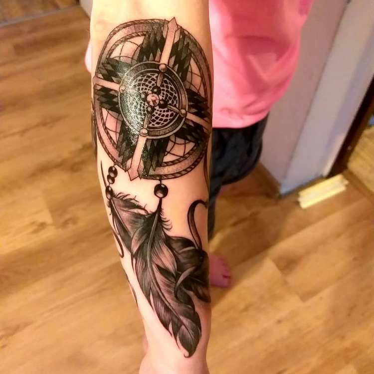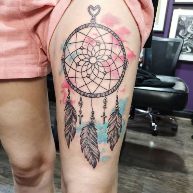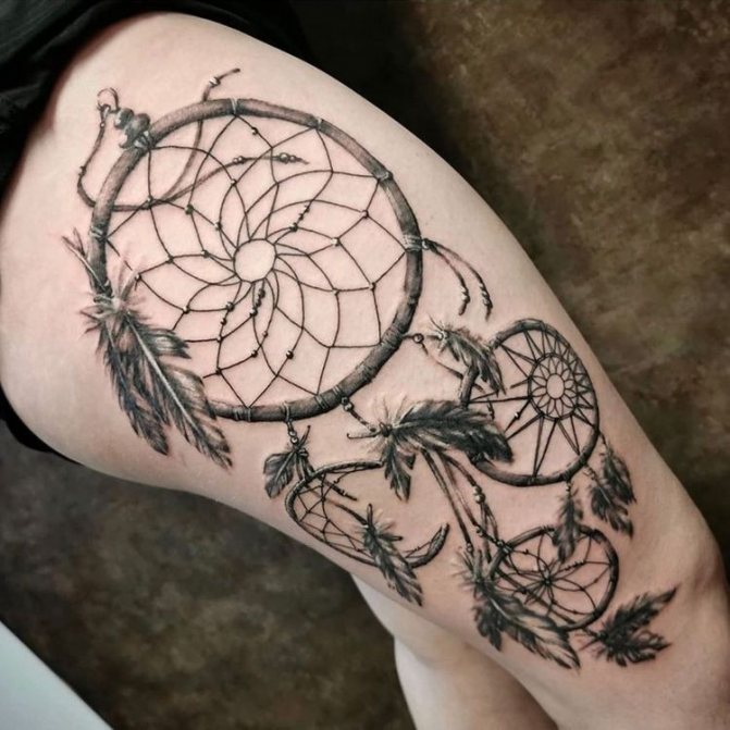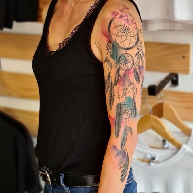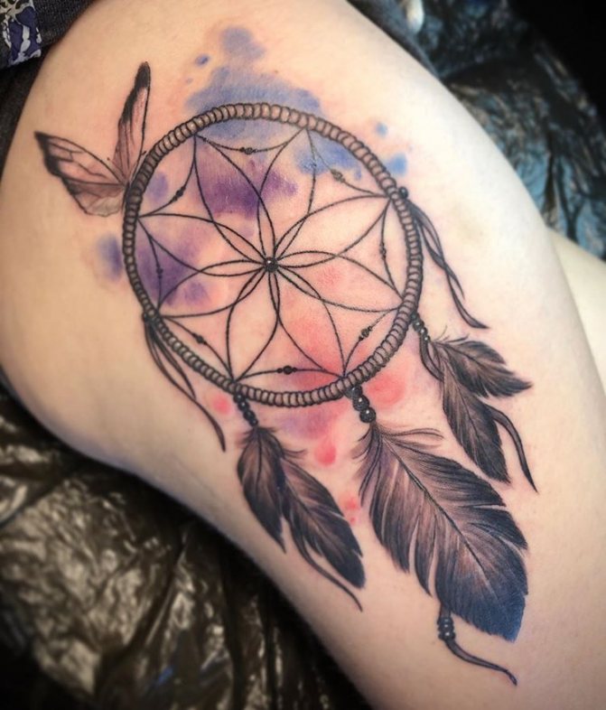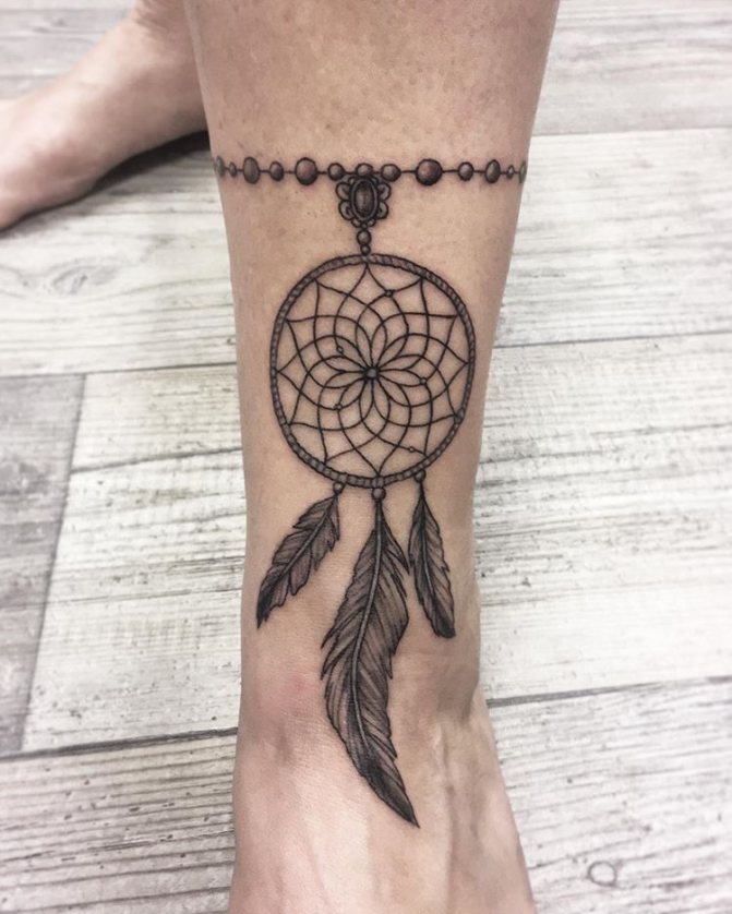 En raison de son origine "magique", le motif de tatouage d'un capteur de rêves, comme doté de pouvoirs protecteurs. Une toile d'araignée empêche les pensées négatives d'entrer, ce qui a un effet positif sur la vision de la vie de son propriétaire. Et l'espace libre central laisse entrer des rêves bons et positifs. Les plumes jouent leur propre rôle important. Ce tatouage est un symbole du souffle et de l'air, sans lesquels il n'est pas possible d'exister sur terre. Ce tatouage guide le porteur dans sa vie, le protégeant du mauvais œil et des mauvais esprits, ainsi que de toute énergie négative autour de lui. Pour ceux qui souffrent d'insomnie et de cauchemars, un tatouage représentant un capteur de rêves est une excellente solution au problème. Pour ceux qui portent l'image, certains sont simplement de fervents adeptes de la culture amérindienne. Par conséquent, pour eux, un tel tatouage ne sert pas seulement de talisman, mais témoigne également du culte et de l'admiration pour cette culture séculaire.