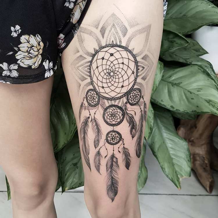 Le tatouage attrape-rêves ne doit pas se limiter à l'image classique. Vous pouvez faire preuve de toute votre imagination et jouer avec des éléments de tatouage typiques comme les mandalas pour créer une pièce unique. Jouez avec les couleurs ou concentrez-vous sur le noir et le blanc - les deux peuvent être époustouflants si le tatoueur sait en tirer le meilleur parti.