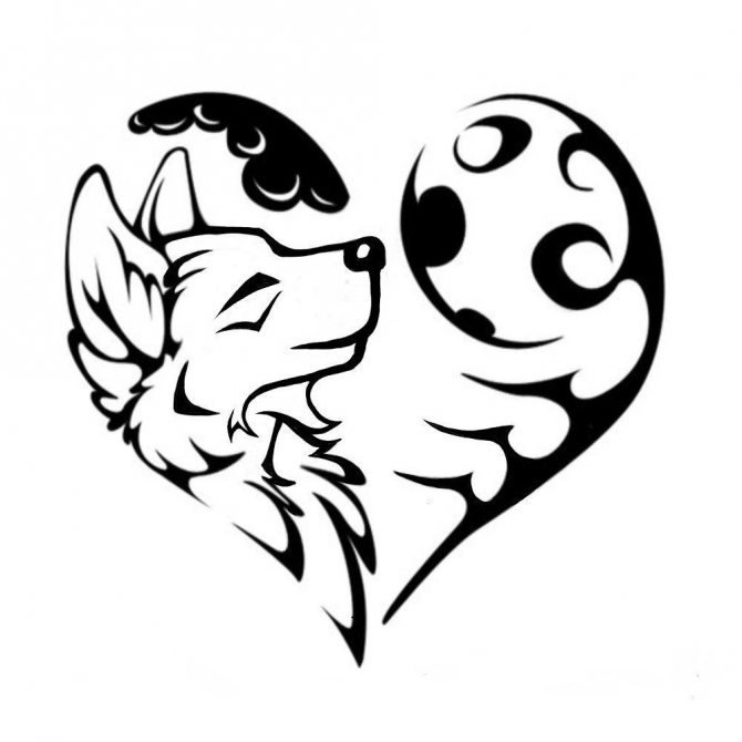 Une autre particularité est la couleur profonde. Les maîtres n'utilisent pas de demi-teintes lors de la création d'une image, travaillant uniquement avec de la peinture noire. Les coups sont appliqués en parallèle et peuvent avoir des longueurs différentes. Le plus difficile est de créer des formes arrondies et complexes, mais en faisant preuve de retenue, vous pouvez réaliser n'importe quel dessin et même capturer une image humaine. Les esquisses représentant des animaux et des insectes sont les plus populaires. Une silhouette en forme de tête de loup pour les hommes et une silhouette de libellule pour les femmes.