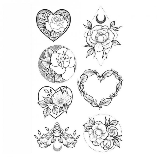- Des symboles simples ayant une signification spécifique - cœurs, flèches, signe de l'infini, Yin et Yang, ange, anneaux entrelacés, chaînes.