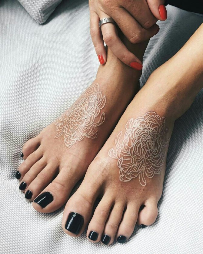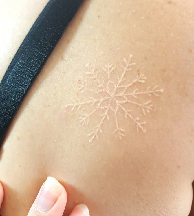 La plupart du temps, les tatouages blancs pour filles sont appliqués sur le bras. Les motifs sont spectaculaires sur les mains et les hanches, les inscriptions - sur les poignets et les avant-bras, et les dessins abstraits - sur la poitrine ou le cou. Les symboles plus petits sont le plus souvent imprimés sur les doigts.