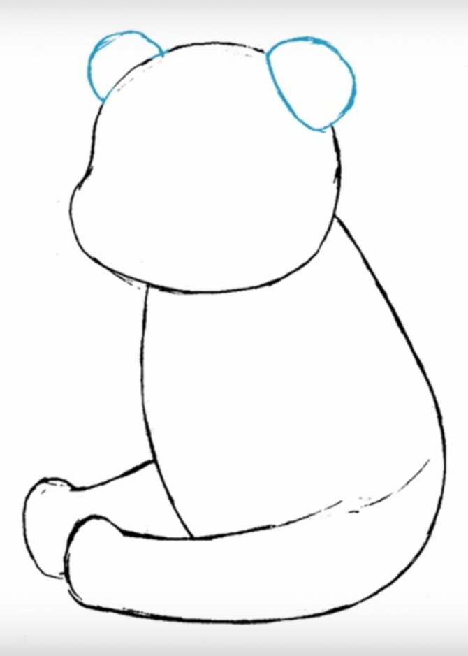 - 1 étape. Dessinez le contour de son torse, de sa tête et de ses pattes. Même si les pattes de l'ours ne sont pas grandes, vous devez essayer de leur donner un aspect fort et robuste. Dessinez les oreilles sur le dessus de la tête. Marquez l'emplacement des yeux avec une fine bande horizontale.