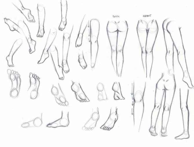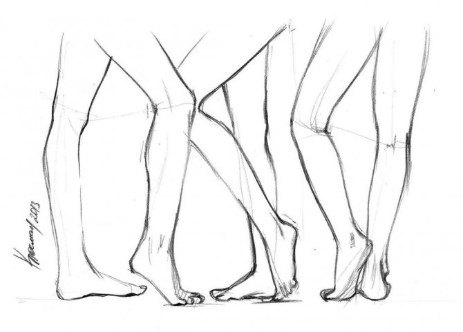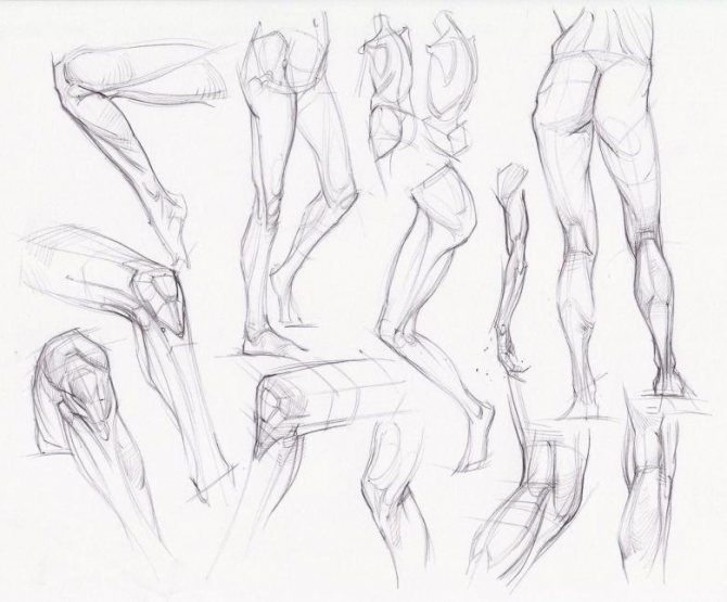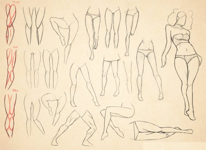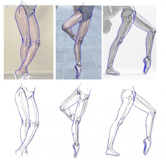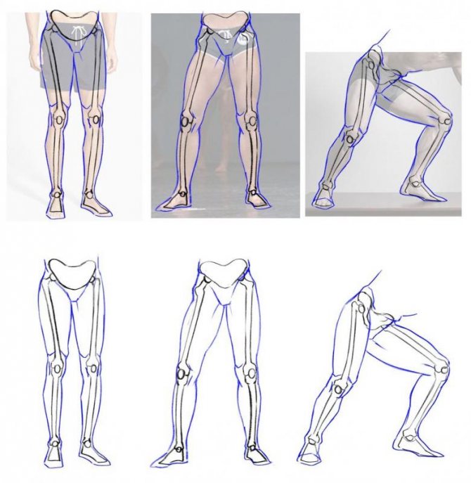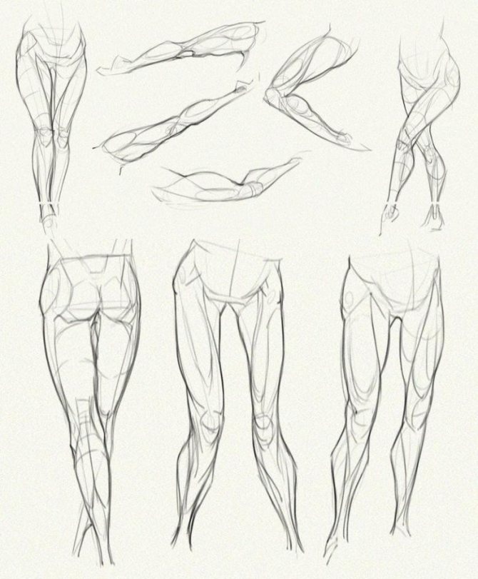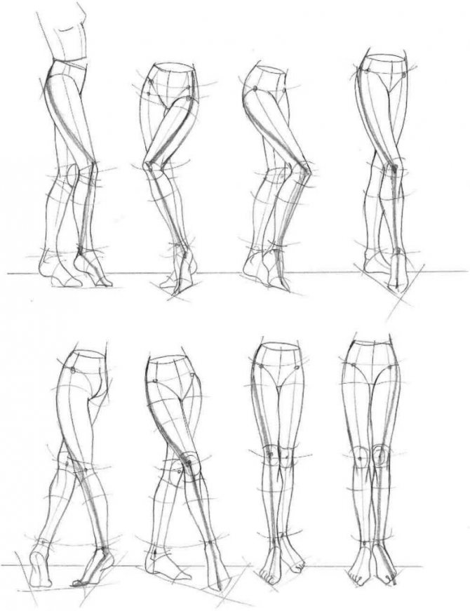 De nombreux artistes, ne remettent pas en question le transfert réaliste des jambes dans le dessin et utilisent un minimum de détails dans l'œuvre. Cette approche a ses charmes, mais tout illustrateur qui se respecte étudie l'anatomie avant de procéder à la création de son écriture unique. Les étapes suivantes dépendent des choix stylistiques.