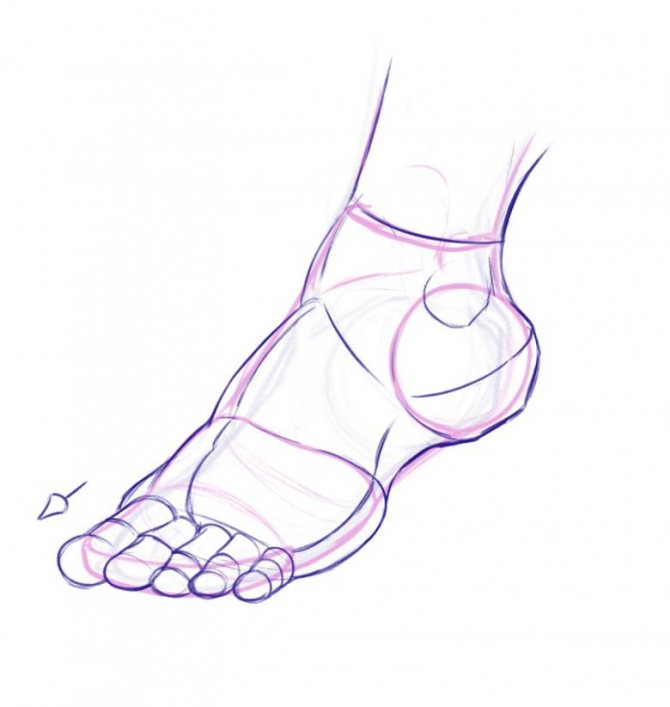 Pour dessiner le pied debout sur l'orteil, utilisez la méthode de dessin de formes simples décrite ci-dessus.