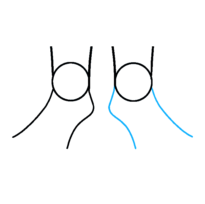 En regardant l'avant du pied, tous les orteils sont alignés et dessinés comme des gouttes d'eau. Dessinez cinq cercles, puis prolongez les lignes jusqu'au pied.