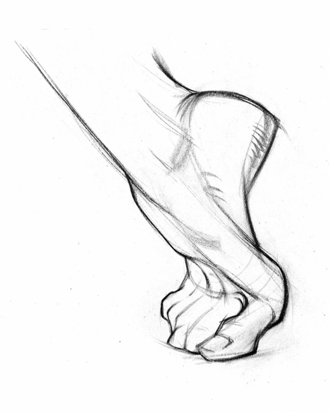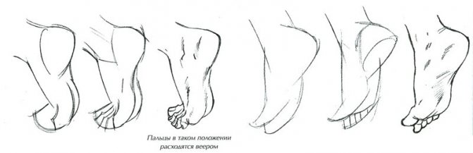 Lorsque les orteils se plient, toute la voûte plantaire se courbe comme s'il s'agissait d'un système unique - ne dessinez pas les orteils pliés comme s'ils étaient attachés au pied par des charnières et se déplaçaient séparément de lui.